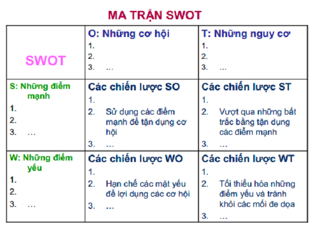 - Đơn giản của mô hình này là tìm ra điểm mạnh, điểm yếu của bạn để tận dụng cơ hội và thách thức cho chính mình. Hãy thống kê đừng bỏ sót một điểm gì nhé
